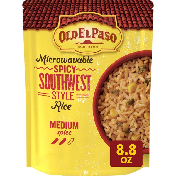 - CONTAINS: One 8.8 oz pouch of Old El Paso Microwavable Spicy Southwest Style Rice; 1 serving