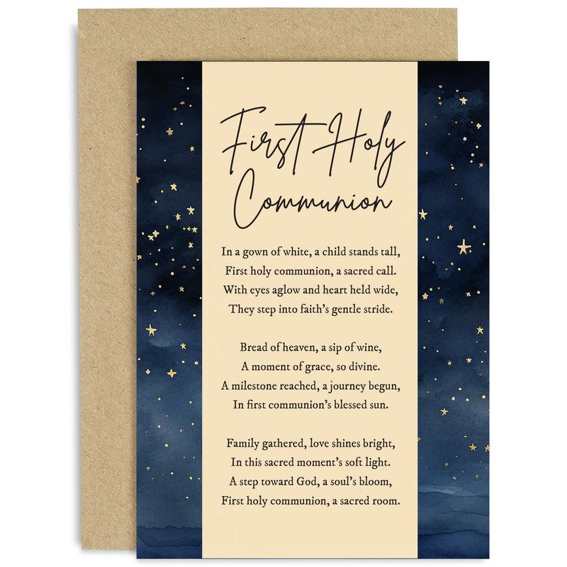 - 🌿 FIRST HOLY COMMUNION CARD FOR BOY OR GIRL: This greeting card has been beautifully designed to gift on a First Holy Communion Day and celebrate this religious day for him or her. Ideal to be gifted to a girl or boy with its gender neutral design. Perfect to gift a grandson, granddaughter, godson, goddaughter, daughter, son, niece, or nephew.