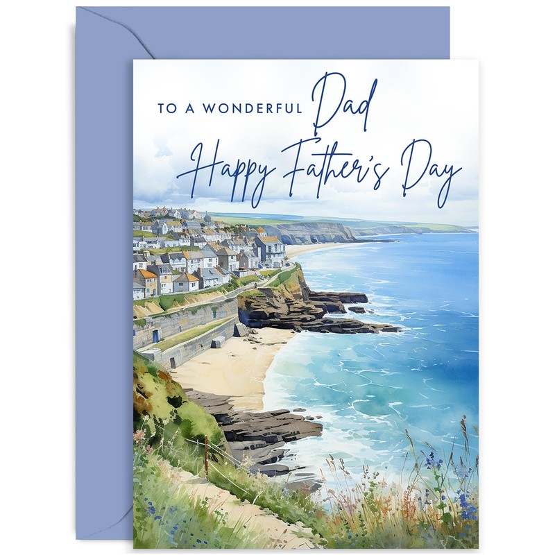 Old English Co. Traditional Father's Day Card for Dad - Seaside Watercolour Scene Father's Day Card for Him - Special Greeting Card from Children, Adult Son or Daughter | Blank Inside