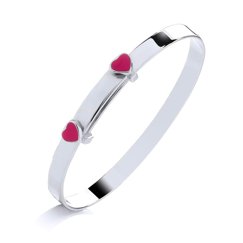 Old English Jewellers 925 Sterling Silver Expanding Pink Enamel HEART Expanding Baby Bangle Girl Chirldren's