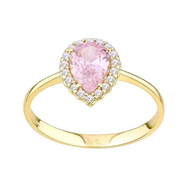 Old English Jewellers 9ct Yellow Gold Pink Sapphire Teardrop Cluster Ring size J K L M N O P Q R S (P)
