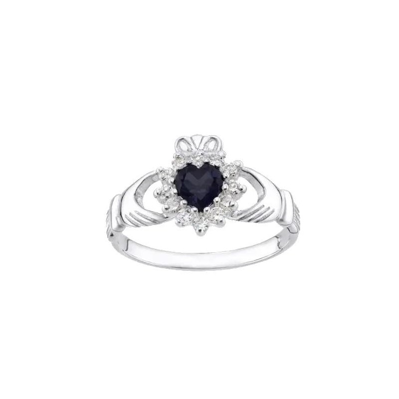 Old English Jewellers Sterling Silver Blue Sapphire Claddagh Ring - size J to U (O)