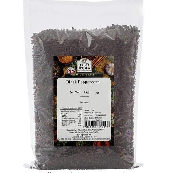 Product DescriptionOld India now has over seven hundred top quality herbs, spices and seasonings available on Amazon.co.uk.IngredientsBlack PepperDirectionsStore in a cool dry place away from direct sunlight.Manufacturer Contact InformationUlverscroft Road, Leicester, LE4 6BY