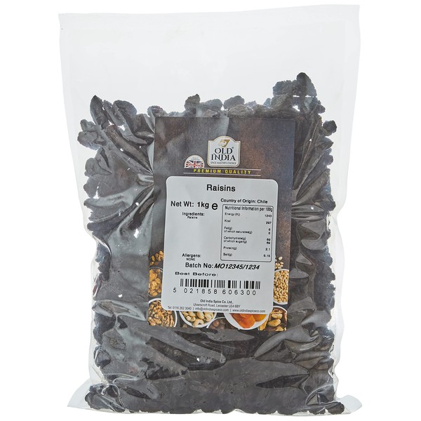 Product DescriptionOld India now has over seven hundred top quality herbs, spices and seasonings available on Amazon.co.uk.IngredientsRaisinsDirectionsStore in a cool dry place away from direct sunlight.Manufacturer Contact InformationUlverscroft Road, Leicester, LE4 6BY