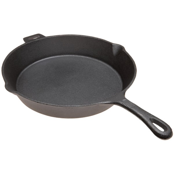 This Old Mountain cast iron skillet is pre seasoned and ready to use. This skillet is 12 inches from spout to spout. The handle on this skillet offers thumb ridges, and it also comes with an assist handle for ease of handling. Cast iron retains heat better than any other cooking media and is the cooking choice of many chefs and home cooks alike. The attractive Old Mountain logo embossed on the bottom of this skillet adds extra style and value.