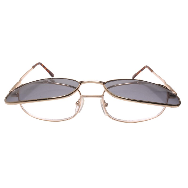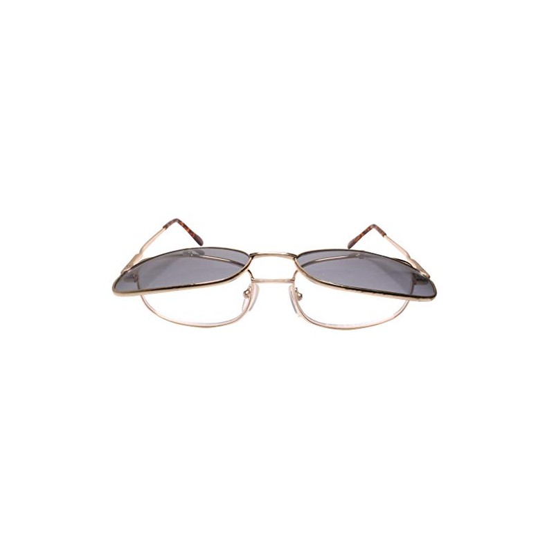 Old School Rectangle Flip Tinted Lens Gold Frame 2.00 Reading Sun Glasses