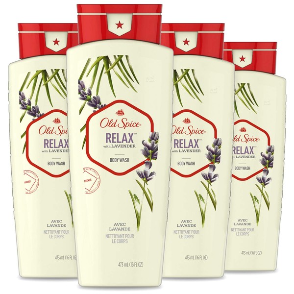 Old Spice Body Wash for Men, Relax with Lavender, 16 Fl Oz (Pack of 4)