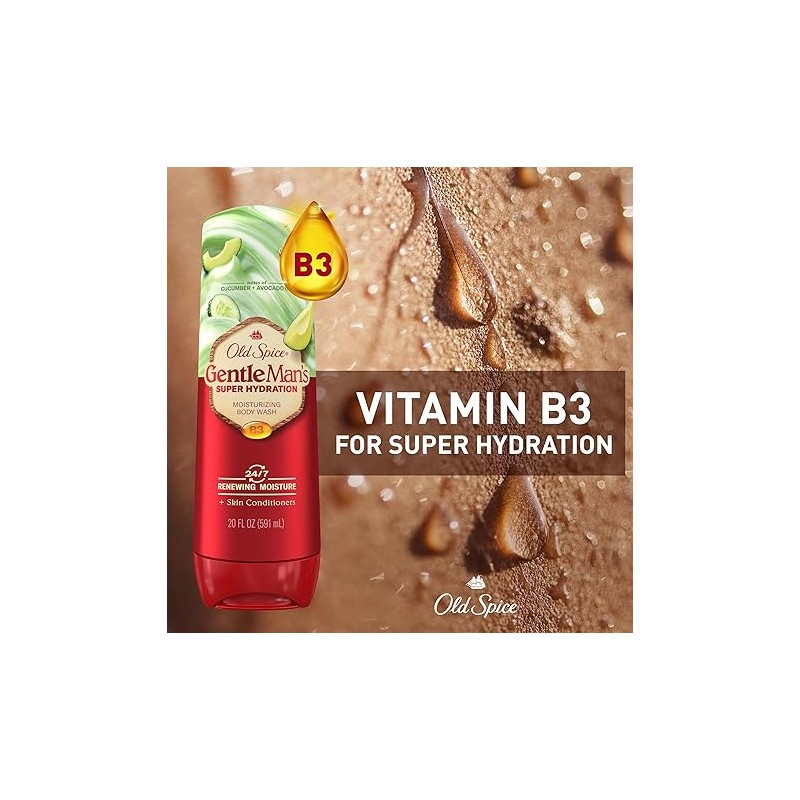 Old Spice Body Wash GentleMan’s Super Hydration for Men, 24/7 Renewing Moisture, Gentle on Skin with Skin Conditioners, Deep Sea with Ocean Waves + Kelp Scent, 20 oz