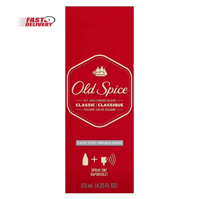 Old Spice Cologne Spray for Men, Classic Scent, 4.25 fl oz. Old Spice Cologne has been around for generations. If your grandfather hadn't worn it, you wouldn't exist. Neither would velvet paintings, the chili dog, and sheepskin rugs - manly things that were made by men who smelled strong and splashed Old Spice cologne on their faces before doing other manly stuff during their day. The unmistakably masculine musky scent of Old Spice. 4.25 fl oz