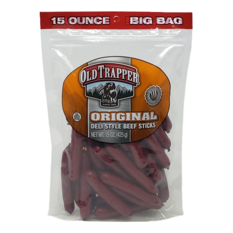 Old Trapper Original Deli Style Beef Sticks - 15 oz Big Bag - Naturally Smoked Beef Sticks - Choose a 2 Pack or 3 Pack - Comes in Resealable Bags (3 Pack)