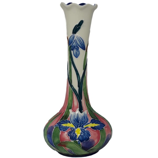 Old Tupton Ware Tube Lined Blue Iris Bud Vase 21cm 8'' TW1222