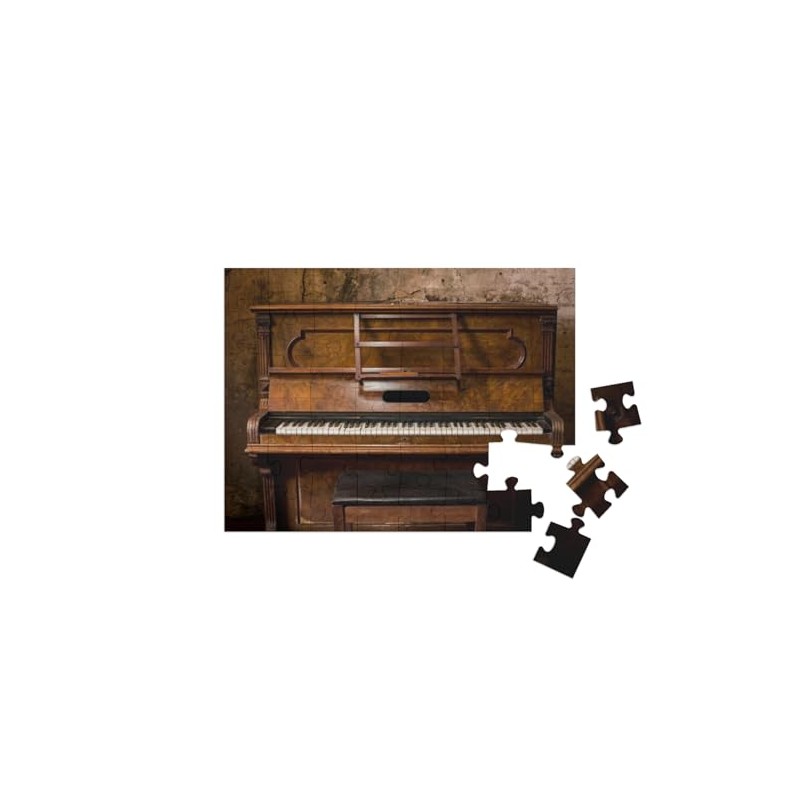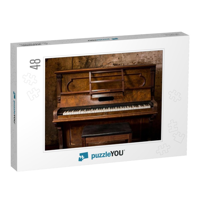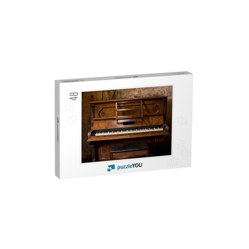 Old Wooden Piano Keys on Wooden Musical Instrument in Fro... Jigsaw Puzzle Jigsaw Puzzle with 48 Pieces