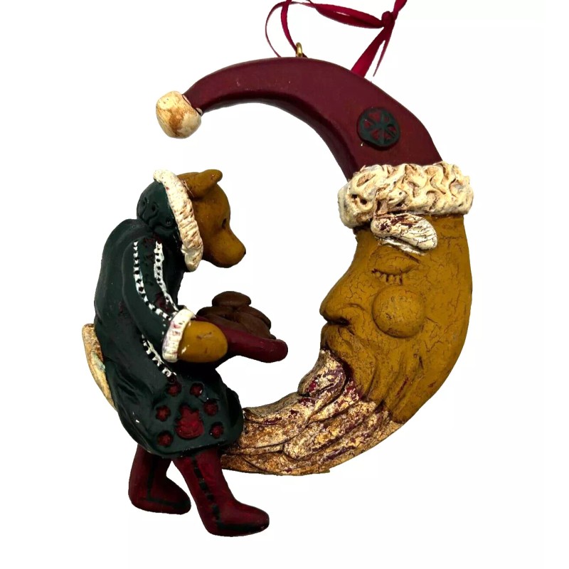 Old World Shakespearean Bear Sharing Cookies With Moon Santa Christmas Ornament