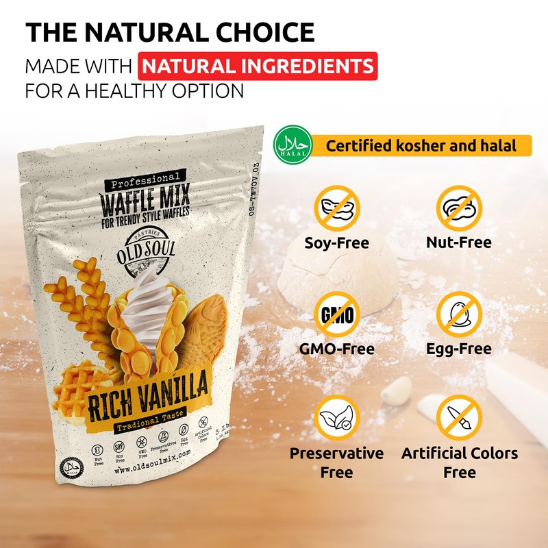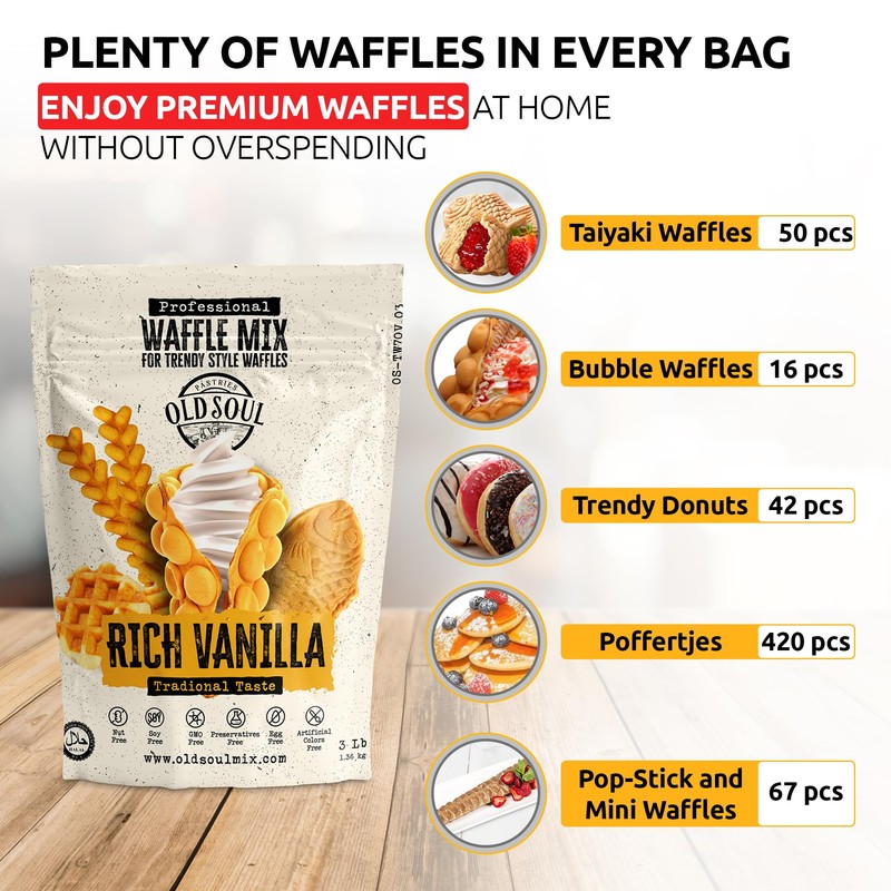 OLDSOUL Trendy Waffle & Pancake Mix | Bubble Belgian Cone | Natural Ingredients | Easy Preparation | Reach Vanilla Flavor (15 Lbs)