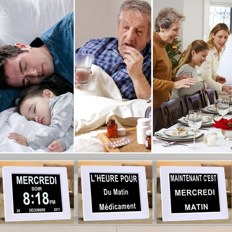 - Clearly display in 8 languages: this day clock clearly shows the day, week and month in large bold font without using the abbreviations in English, Spanish, French, German, Italian, Polish, Dutch or Wales. Not whether you have a GPS receiver abbreviation or voice problems.