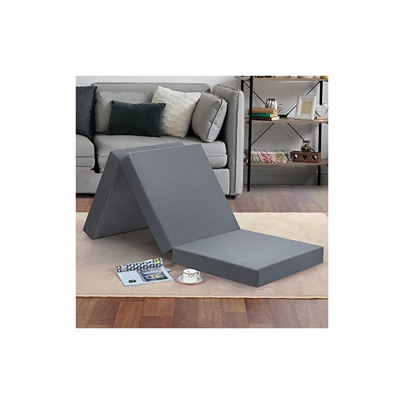 Olee Sleep Tri-Folding Memory Foam Topper, 4", Gray, Single size, Play Mat, Foldable bed, Guest beds, Portable bed
