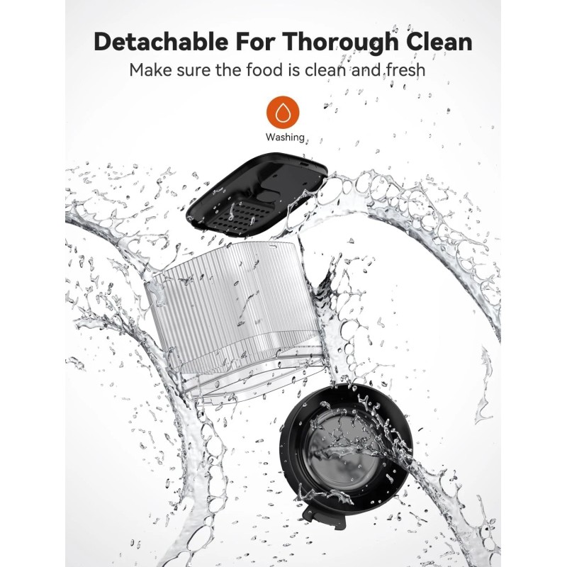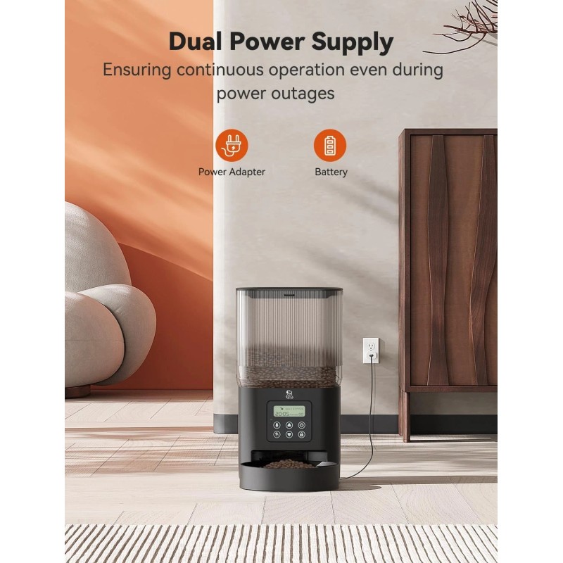 Optimal Food Capacity: Boasting a 5L/21 cup capacity, this automatic pet feeder consistently and smoothly provides food for your cat or small dog for several days. The anti-clog design eliminates worries about food blockages, keeping your pet happy and well-fed even when you're away.
