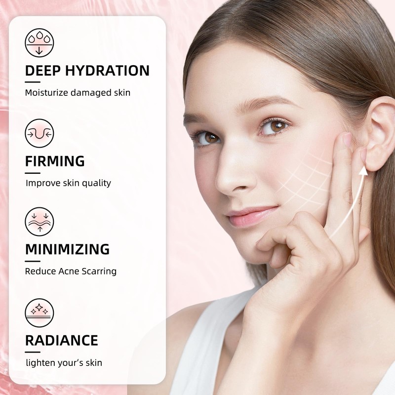 • Firm and Refine - Experience immediate tightening effects thanks to our ultra-low molecular collagen, which not only minimizes the appearance of enlarged pores but also enhances skin elasticity for a youthful look.