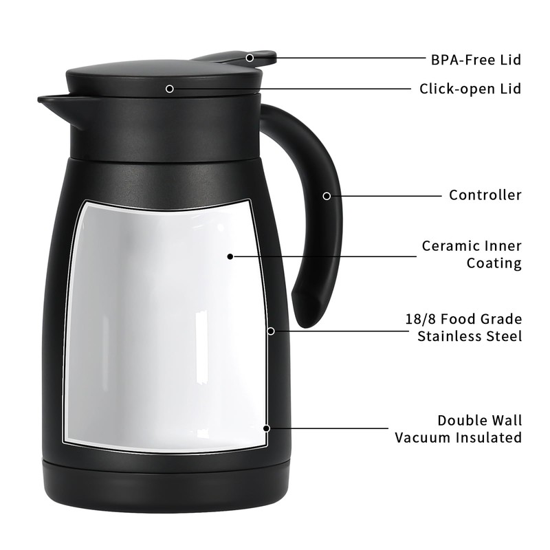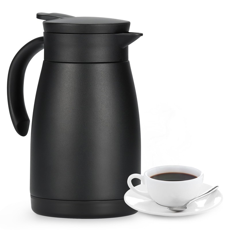 - Single Hand Coffee Pouring - Coffee is a luxury that should make drinking or handling it effortless. This thermal coffee carafe is built with a pour spout that opens with no sweat. This coffee dispenser's simple push button allows one-handed pouring of your coffee, tea, or water with ease and comfort anytime and anywhere.