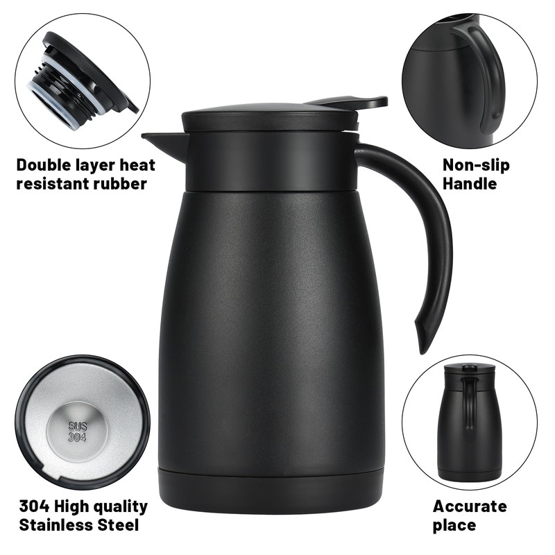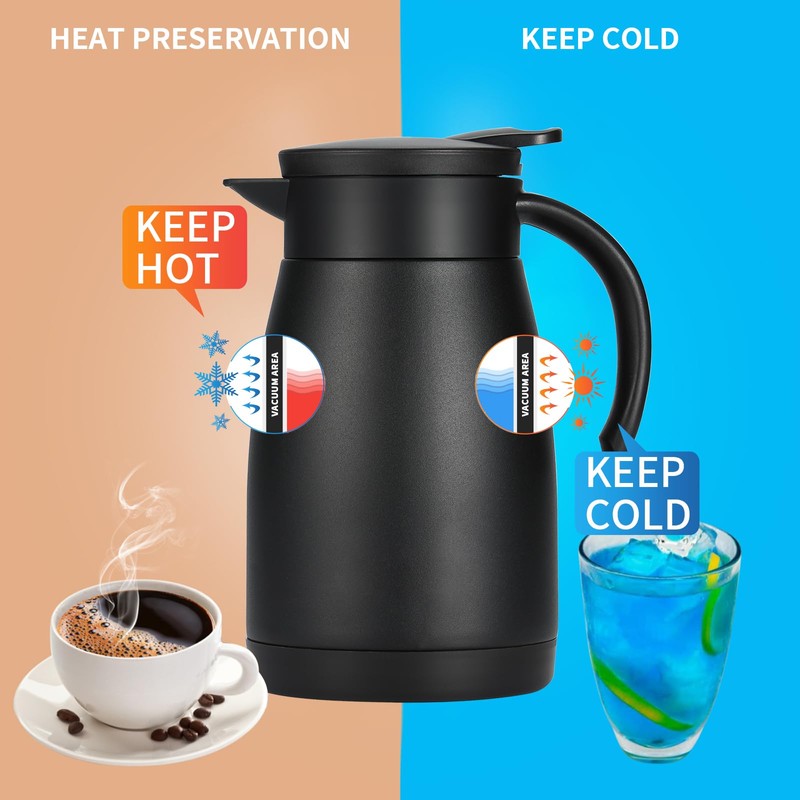 - Fresh Coffee And Beverages For Hours - This 750ML Coffee Carafe is the most essential coffeeware every coffee fanatic needs to keep beverages fresh for hours. This thermal coffee dispenser is designed with a vacuum insulation technology that locks in temperature for any drink of choice to preserve flavour and freshness on any occasion. It is guaranteed beverages will stay hot for 4 hours or cold for 6 hours.