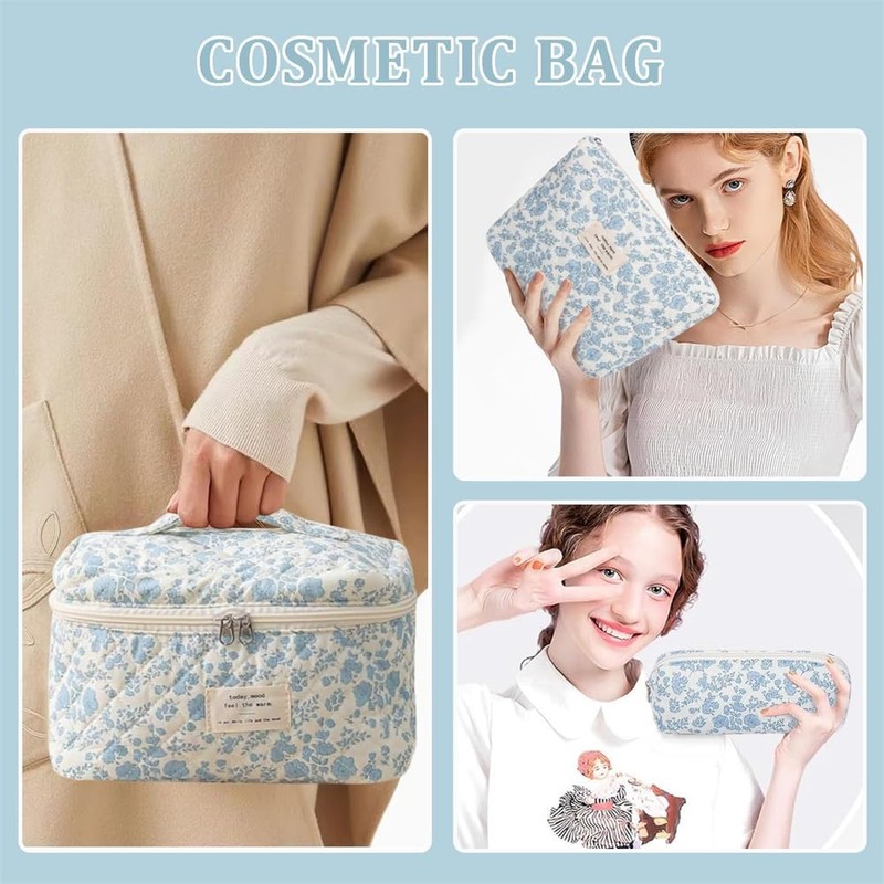 • 【Unique Design】This cute quilted bag has flower pattern design, fashionable and skin-friendly, comfortable to touch and refresh your wardrobe. It is what you need for storage and travel, and can be used in a variety of scenarios in daily life. Show your personal style. This makeup pouch is not only practical, but also a fashionable item worth having and brings confidence and style to every trip
