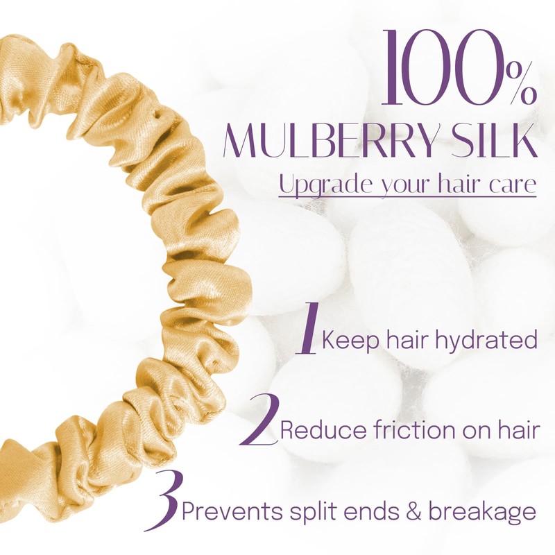 - Material: made of 100% pure mulberry silk, breathable, cool and allergy-friendly. Exquisite workmanship makes the scrunchies elegant and modern.