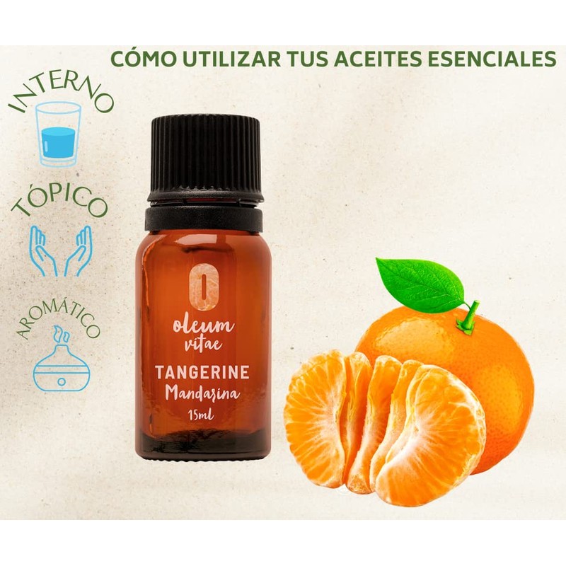 OLEUM VITAE Aceite Esencial de Mandarina. Citrus Reticulata. 100% Puro y Orgánico. Certificado USDA ORGANIC. Aplicación Interna, Externa y Aromática. 15ml