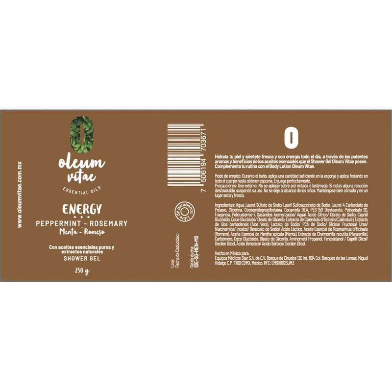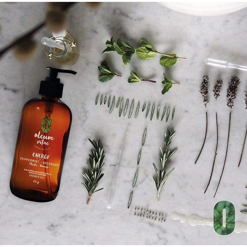 OLEUM VITAE Shower Gel. Gel de Ducha Romero-Menta. Con Aceites Esenciales de Menta y Romero. Hidratación Profunda. Con Extractos de Caléndula, Aloe Vera y Manzanilla. 250gr