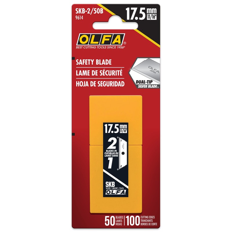 - CONTAINS 50 SAFETY BLADES - Each refill pack contains 50 dual edge safety blades that help reduce workplace injuries. The replacement safety blades are available in quantities of 5 Blades (SKB-2/5B), 10 Blades (SKB-2/10B), and 50 Blades (SKB-2/50B).
