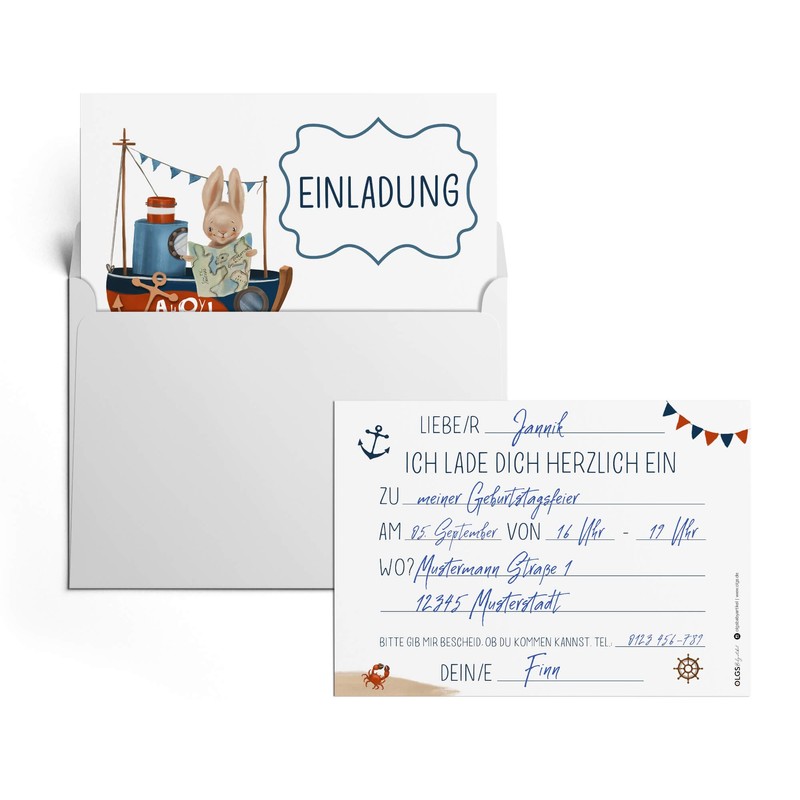 Olgs Ahoy children's birthday invitation cards, set of 12, fillable, including envelopes, perfect for children's theme party