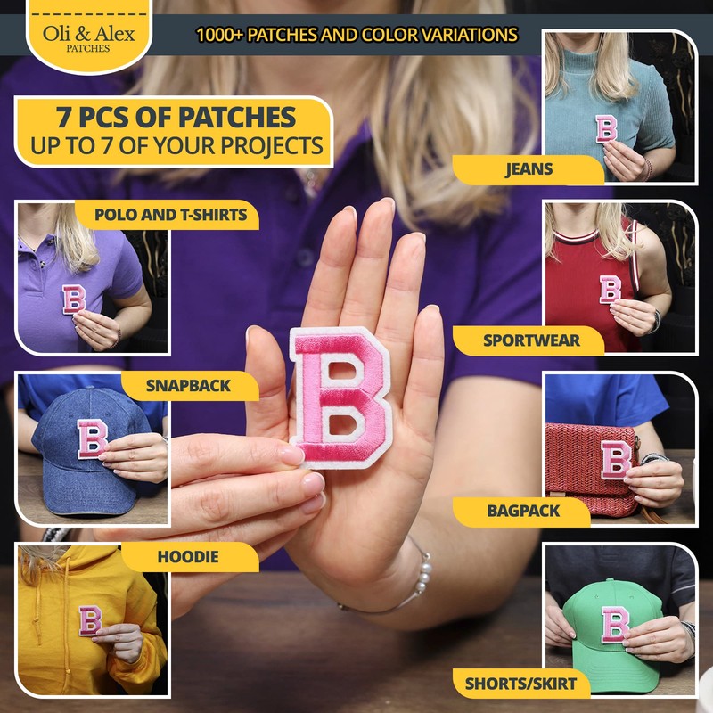 - Meeting Your High Standards: The Oli and Alex varsity letter patches come in a set of 7 pieces with one 2.4-inch alphabet letter. Our collection includes a wide range of sizes, colors, fonts and different materials to choose from! These patches are made in the EU and comply with all international standards to ensure safe and reliable use.