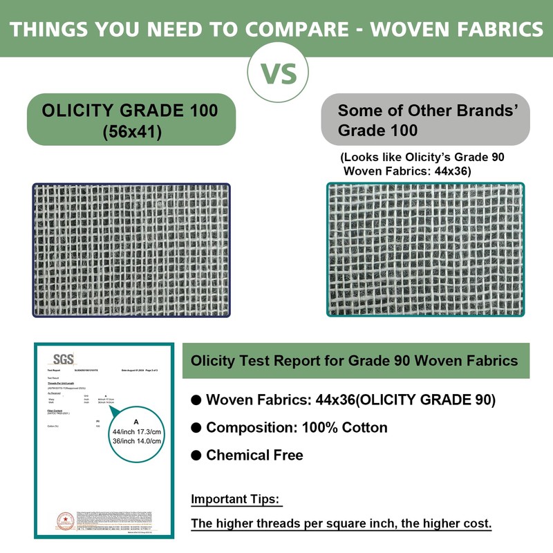 - SGS Tested Grade 90 - Our woven fabrics is 44x36. Didn't reduce threads. No Easy to Tear - The higher threads per square inch, the higher cost. You got what you pay.