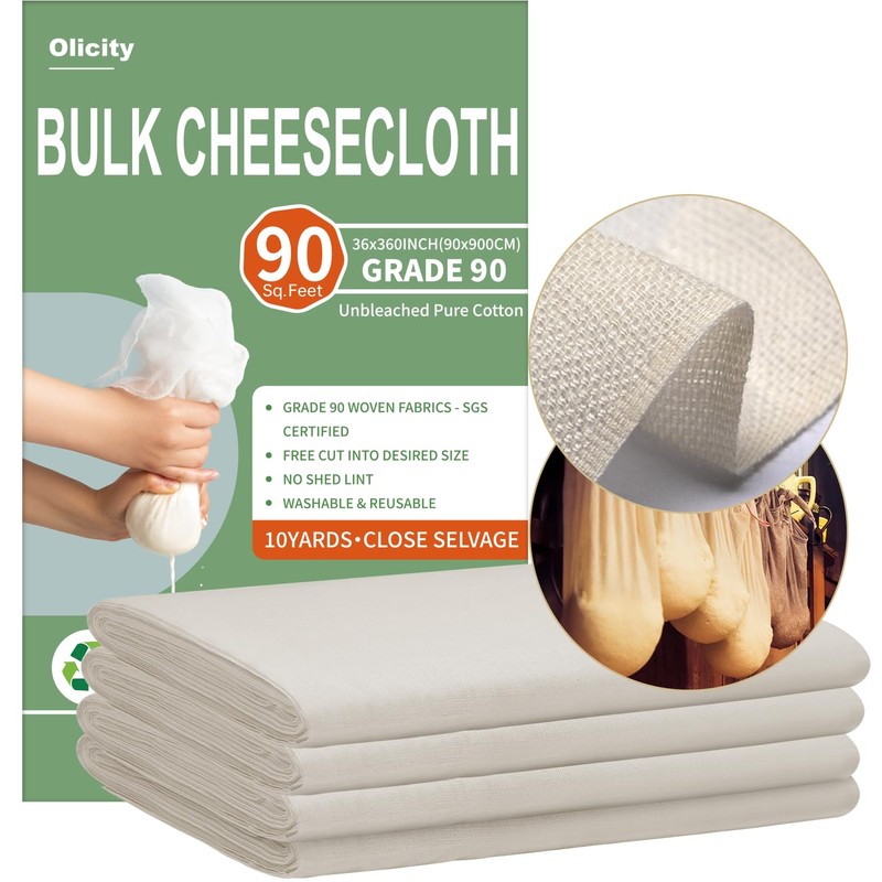Olicity Cheese Cloth Roll,Grade 90, 3x30Ft, 90 Sq Ft,Reusable Cheese Cloth Closed Edges Unbleached Cotton Cheese Cloths for Straining,Fine Mesh Muslin Bulk Cheesecloth Roll for Cooking,Crafts-10 Yards