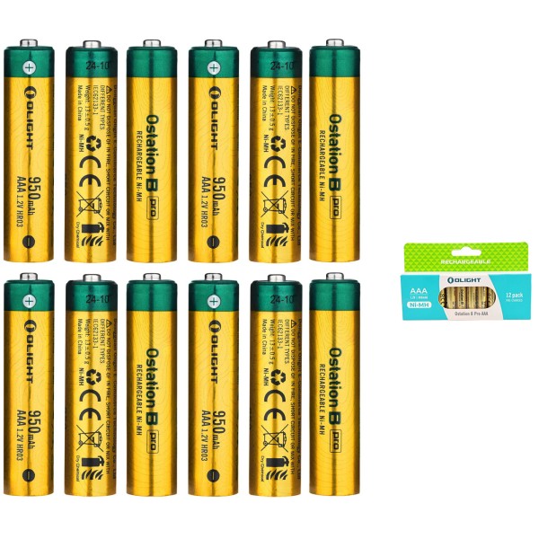 Olight High Capacity B Pro AAA Rechargeable Ni-MH Batteries 9500mAh, 12pcs/Pack