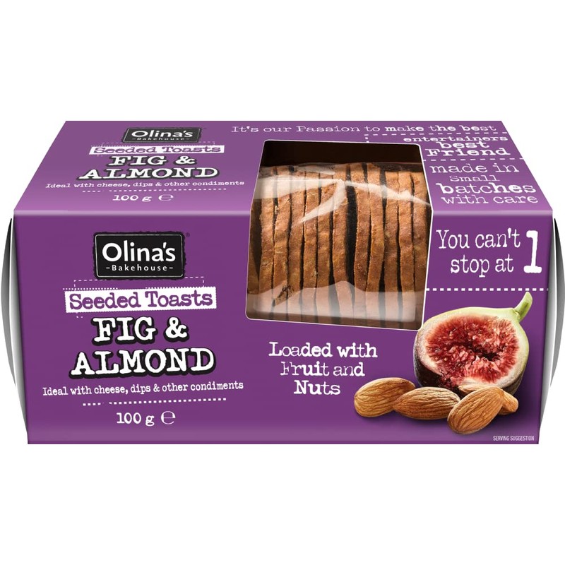 OLINA'S BAKEHOUSE Seeded Toasts - Fig & Almond 100g - 6 Pack