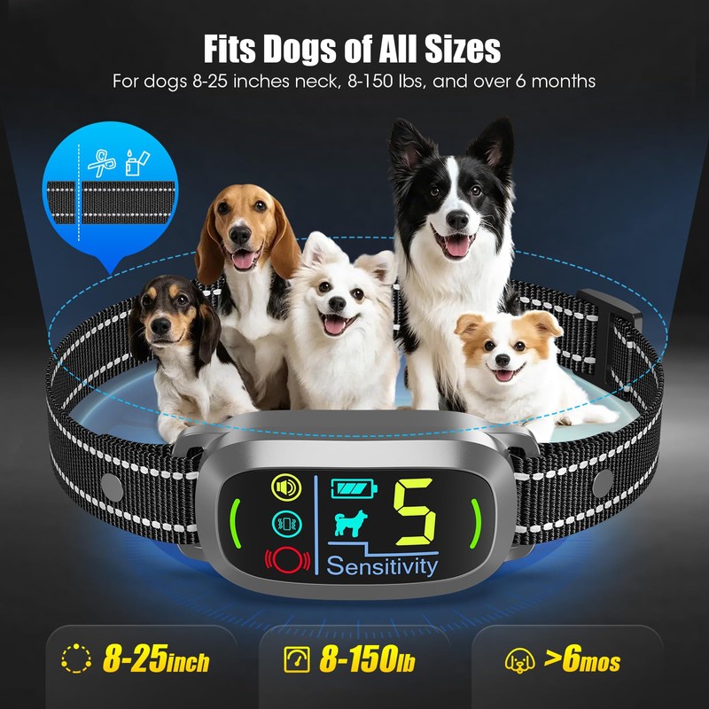 Oliry Smart AI Bark Collar for Large Medium Small Dogs, Anti Barking Device with 5 Training Modes, Exclusive Forced Bark-Stopping, Rechargeable Dog Bark Collar with 5 Sensitivity & IP67 Waterproof