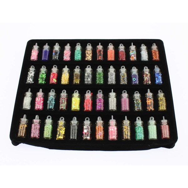 - Set of 48 assorted pieces of decorative parts in a mini bottle. Small quantities are easy to use