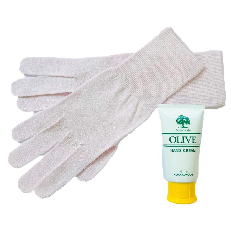 - Made with olive oil produced in Azozushima to create a glove that is extremely soft and will not scratch. This is a 2-piece set with the popular olive hand cream. Also makes a great birthday or just a gift