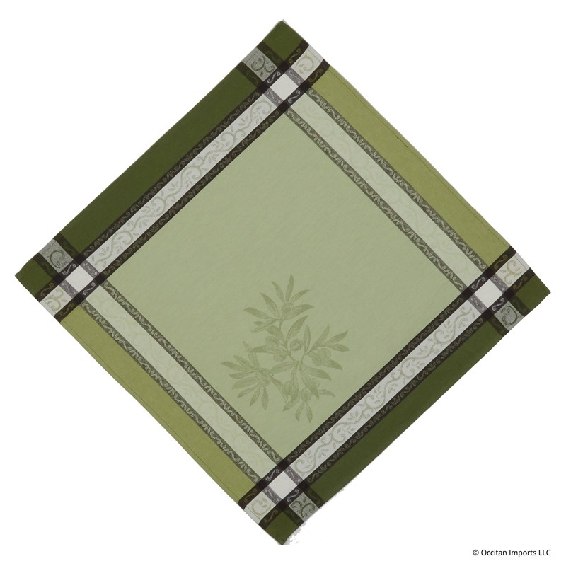 This napkin matches our Olive Vert tablecloths. It is made of pure cotton and measures approximately 20" x 20".