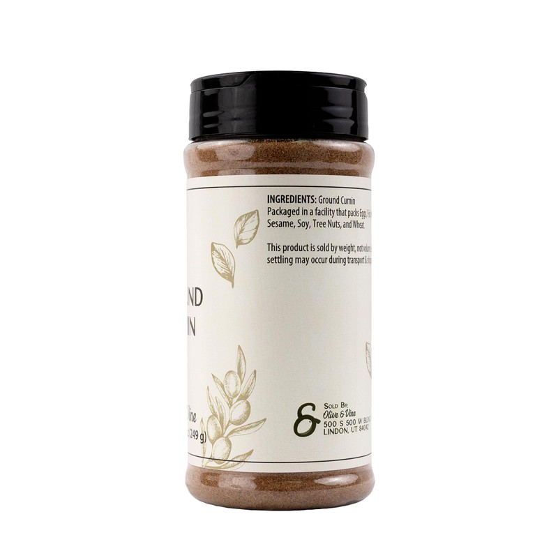 - Olive & Vine Ground Cumin comes in a reusable shaker jar, useful for garnishing any meal