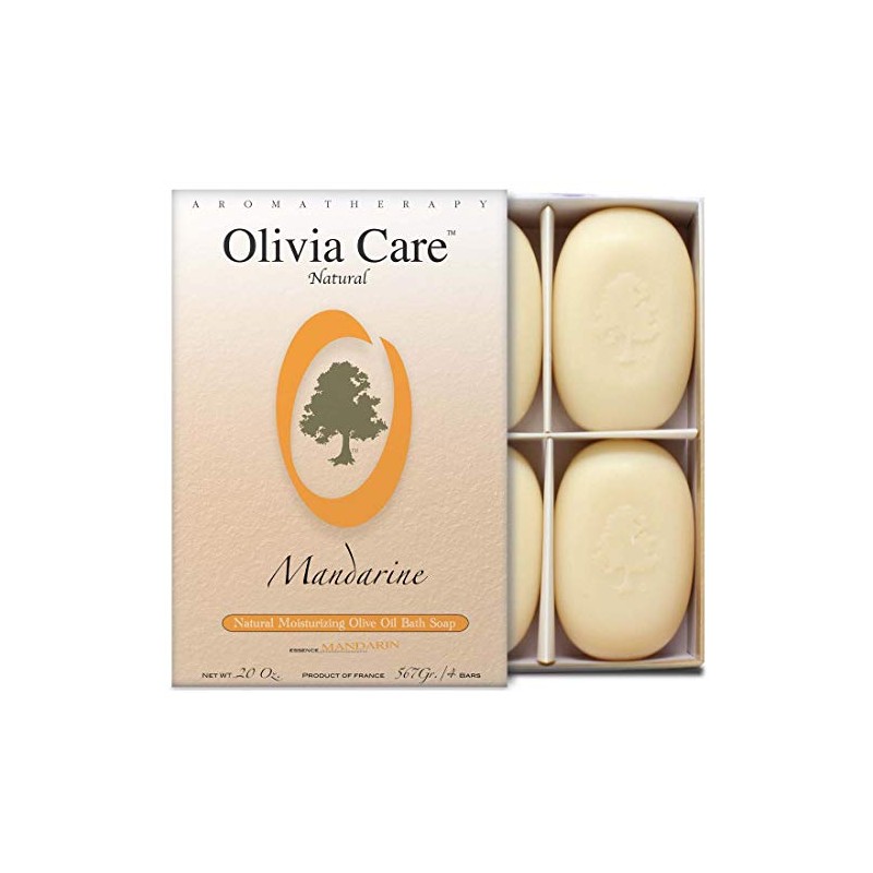 Olivia Care Bath & Body Bar Mandarin Soap 4 Pack Gift Box Organic, Vegan & Natural Contains Olive Oil Repairs, Hydrates, Moisturizes & Deep Cleans Good for Sensitive Dry Skin Made in USA