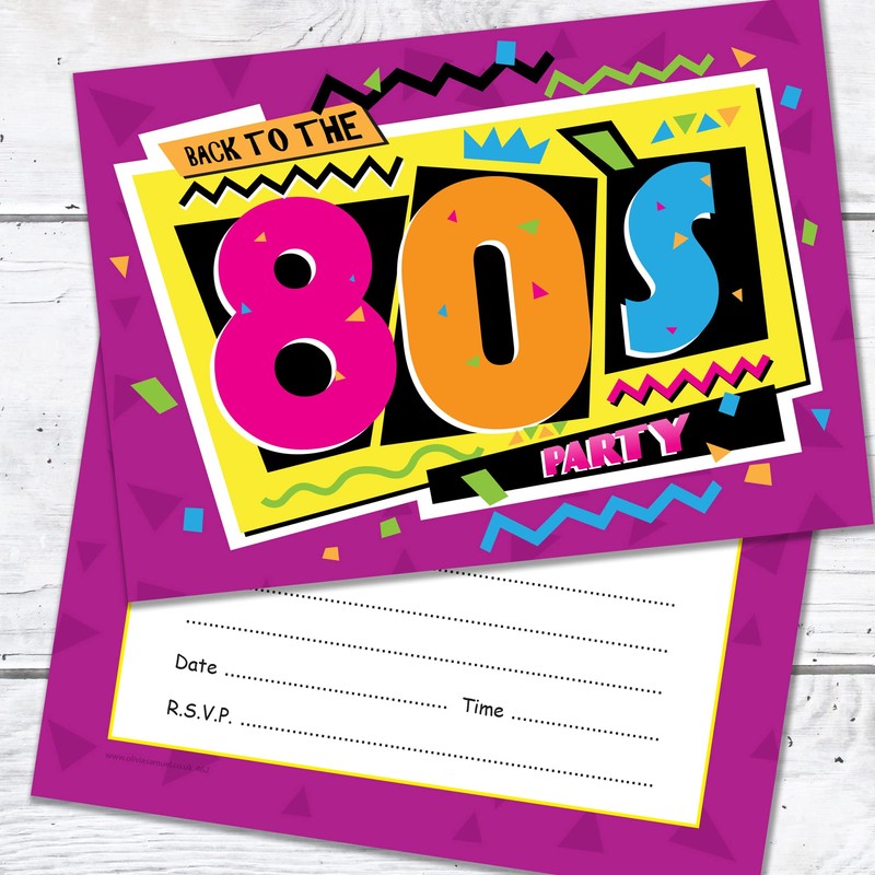 Olivia Samuel 20 x 1980s Themed Party Invites - Ready to Write with Envelopes - Designed and Printed in the UK