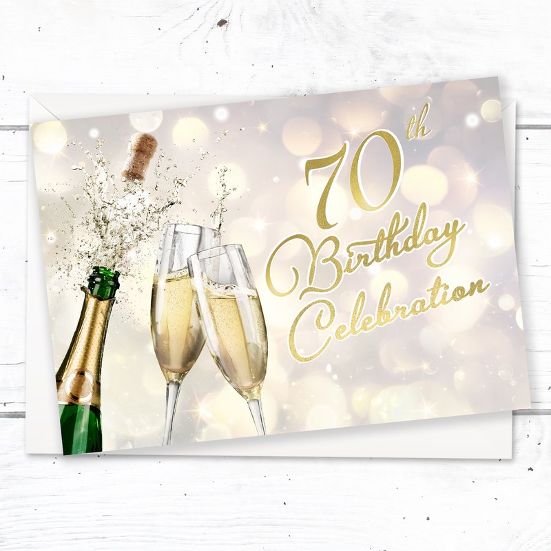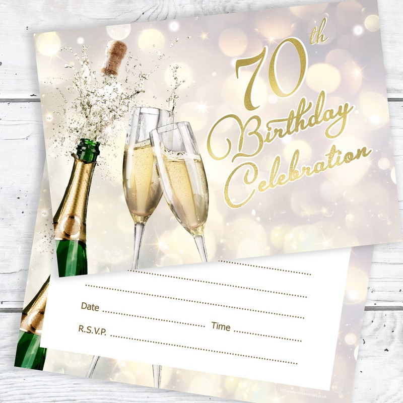 Olivia Samuel 20 x 70th Birthday Celebration Invites from Champagne Style - Ready to Write with Envelopes