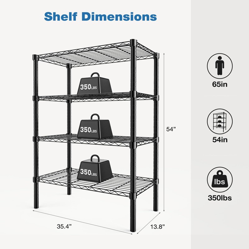 - Material upgrade: Metal storage rack is made of high quality metal, upgraded the weight capacity of the shelves, the shelves are able to hold up to 350lbs on each tier, providing strong support for you to place your items. The coating design of the shelves ensures that the storage racks are rust-resistant, waterproof, high temperature and low temperature resistant, which can be used stably for a long time in various environments