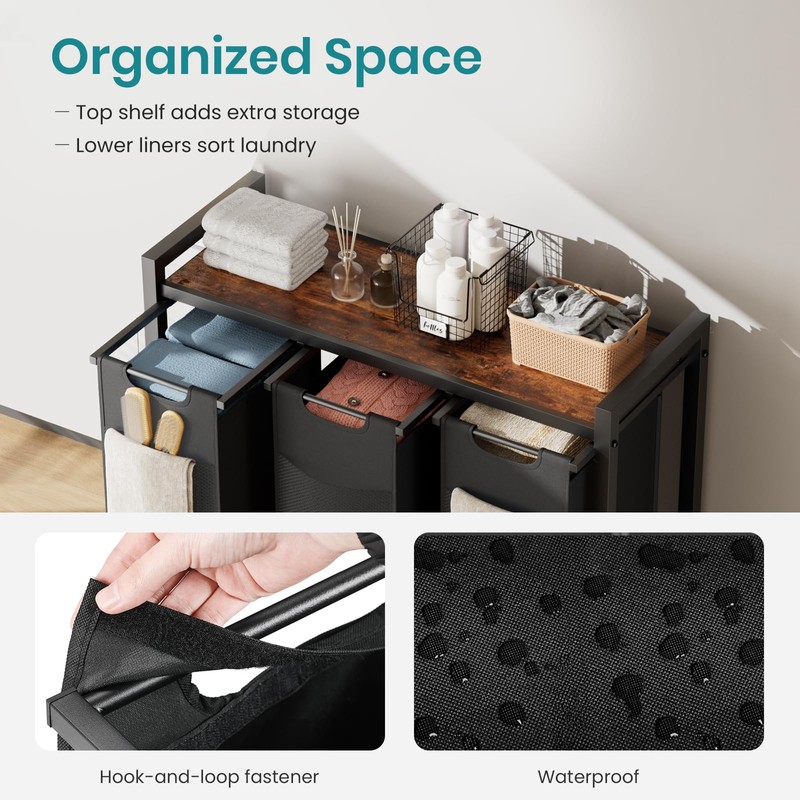 - Stylish & Easy assembly: The rolling laundry hamper 3 section features a modern design that combines metal and wood elements, perfectly blending into spaces such as bedroom, laundry room, and bathroom.The laundry sorter includes all hardware and tools needed. Detailed instructions and a video guide are provided to help you assemble it in under 30 minutes.