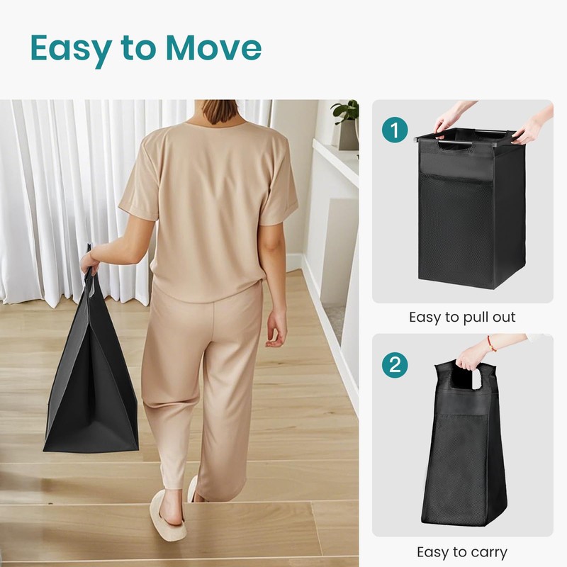 - Pull-out & Removable Basket: The laundry hamper with shelf has a pull-out design with a detachable bag. Open the Velcro to remove it. Stable handles on both sides make it easy to carry, and an inbuilt bottom panel prevents sagging or deformation when full.The outside pocket of laundry basket offers extra storage for small items like brushes and socks.