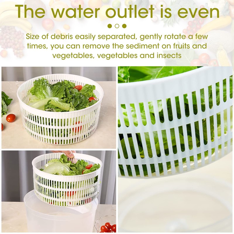 - 🍘 Save time and effort: Just rotate the large handle of the lettuce rotator, you can clean and dry salad vegetables in a few seconds, allowing you to make multiple salads at a time, which is easy and labor-saving.