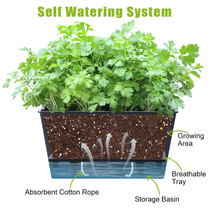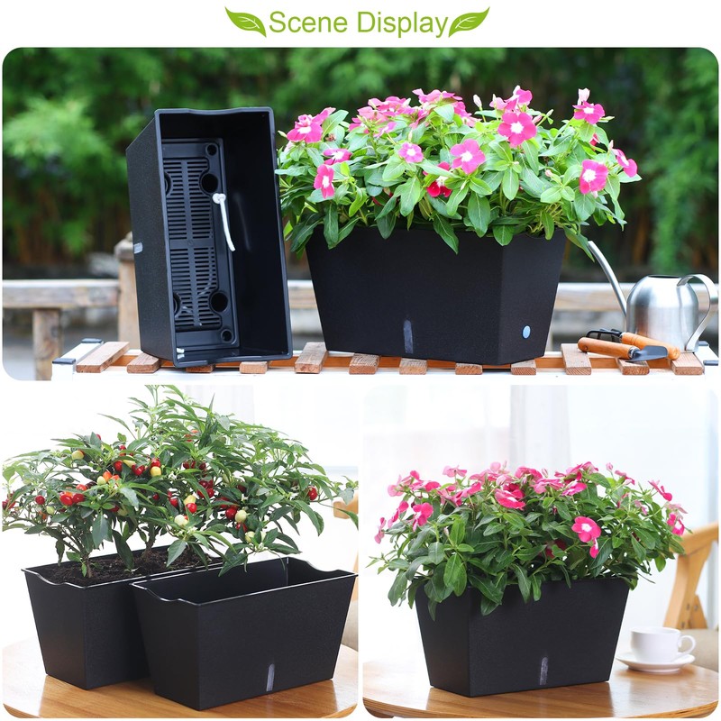 - Premium & DurableThis self-watering planter pot has a marble frosted design, which is very textured and it uses high-quality PP material to provide an all-round growing environment for plants, keep your plants growing healthily. This window box planter is sturdy, wear-resistant and durable. It can be exposed to light, wind, and sunlight for long periods of time, with a lifespan of decades. It is an excellent planter box for both indoor and outdoor.