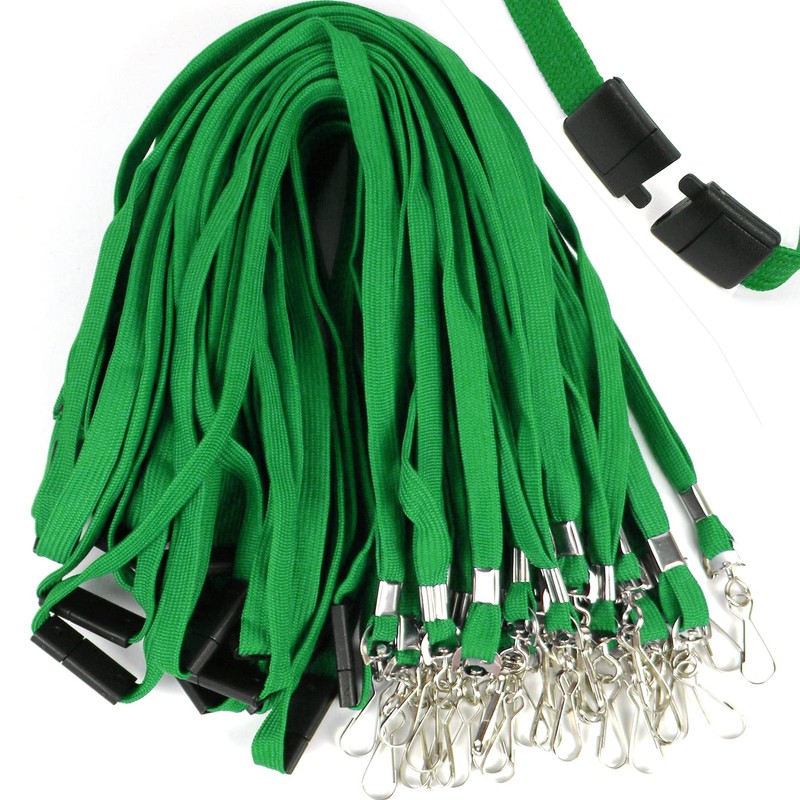 Ollain 25 Pack Breakaway Lanyard with J-Hook Bulk Flat Lanyards for Name tag ID Badges (Green, Breakaway 25 Pack)