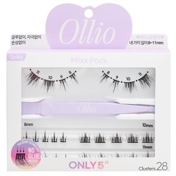 Ollio Olio Mix Pack with Mini Tweezer, No Glue Required, Partial False Eyelashes, 28 Bundles Set, Korean Cosmetics, OMP03J